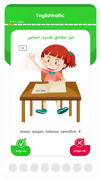 In this application, every 20 words of each lesson must be reviewed in 8 days, and with each review, if you know the meaning, you will tick it, and if you do not know it, you will cross it.